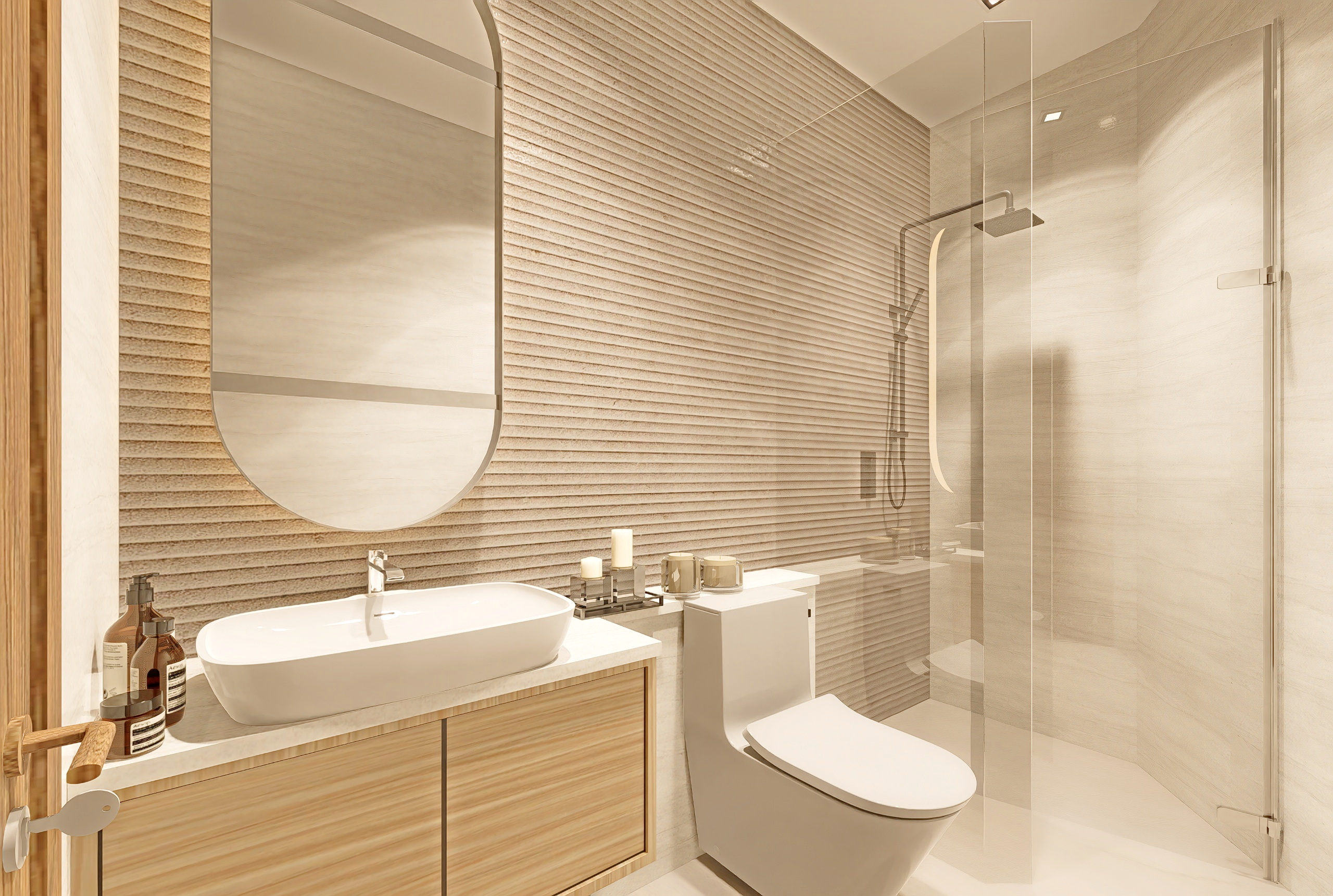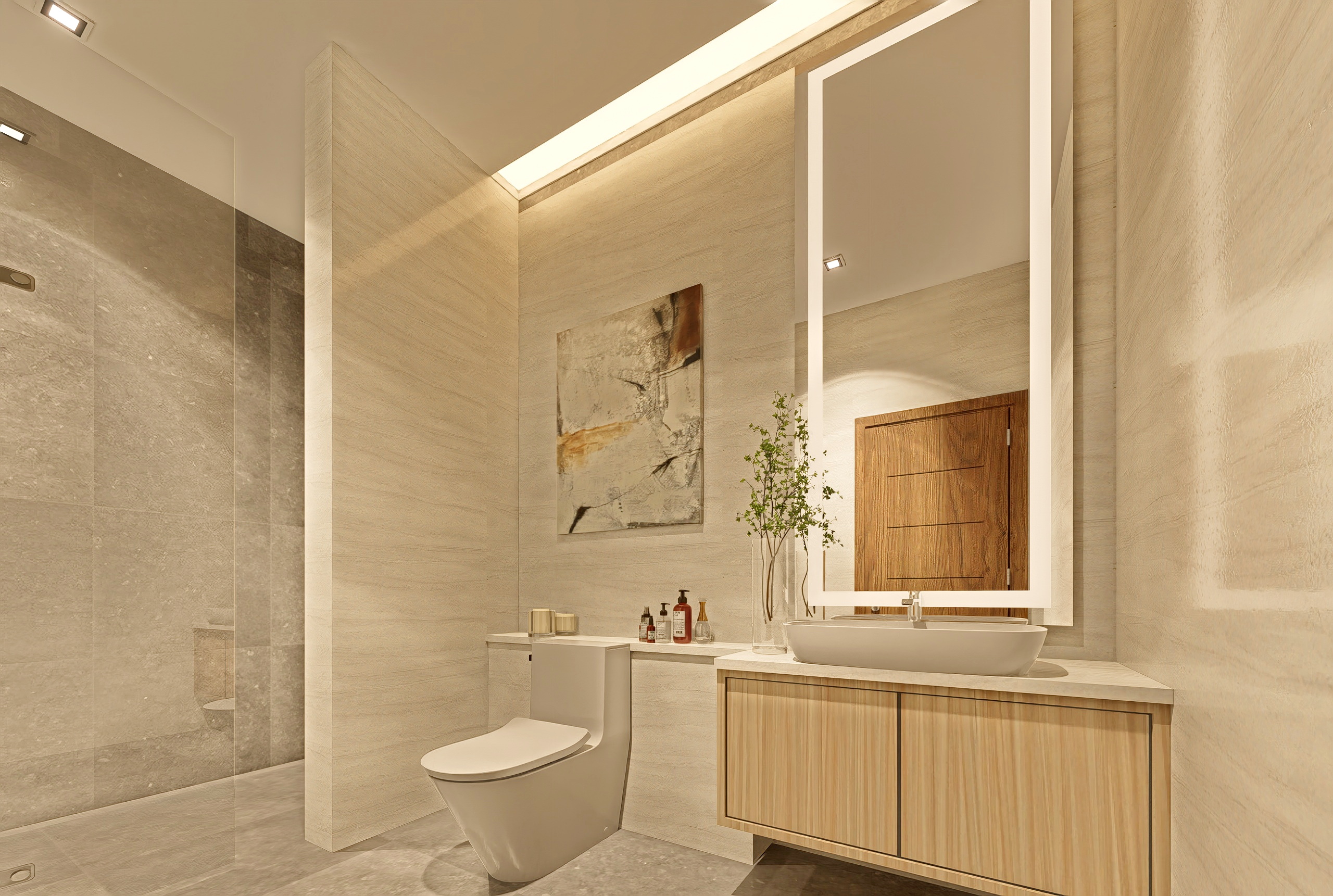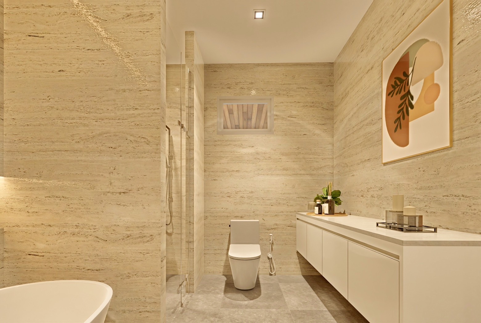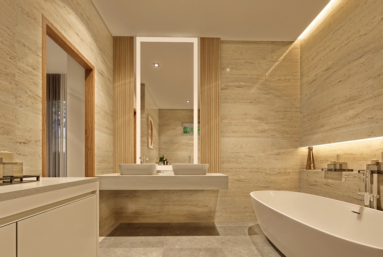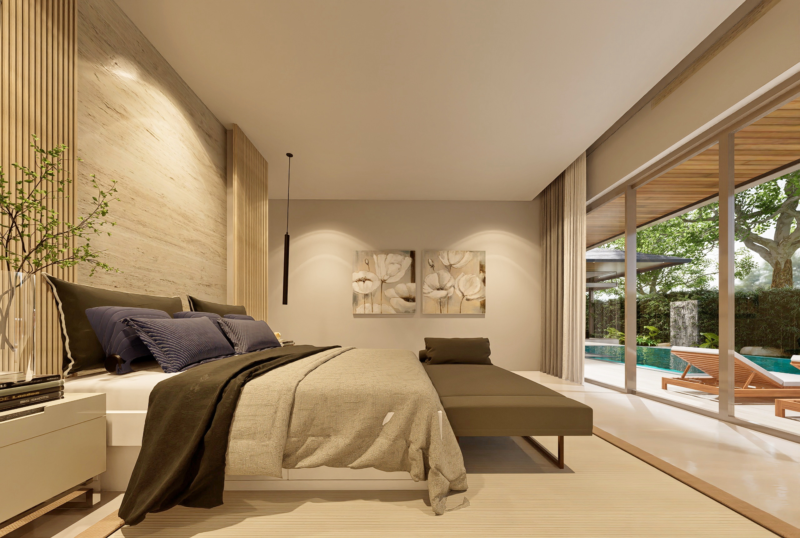 Villa Type B is designed for those who seek extra space and refined living. With 450 sqm of thoughtfully crafted interiors, this villa features 3 bedrooms, 3 bathrooms, a powder room, and a private office, making it ideal for families or professionals working from home. The elegant stone wall finishes, high-quality built-ins, and a luxurious 4×10 meter pool create an atmosphere of both warmth and sophistication.
